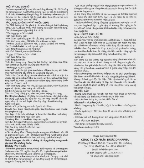– Các thuốc khác như propoxyphen, troleandomycin và acid valproic có thể ức chế độ thanh thải carbamazepin và làm tăng nồng độ carbamazepin trong máu ở trạng thái ổn định. Tuy vậy, các thuốc chống co giật khác, như phenytoin và phenobarbital, có thể làm giảm nồng độ carbamazepin ở trạng thái ổn định qua cảm ứng enzym. Không có tương tác gắn với protein nào có ý nghĩa lâm sàng được thông báo.