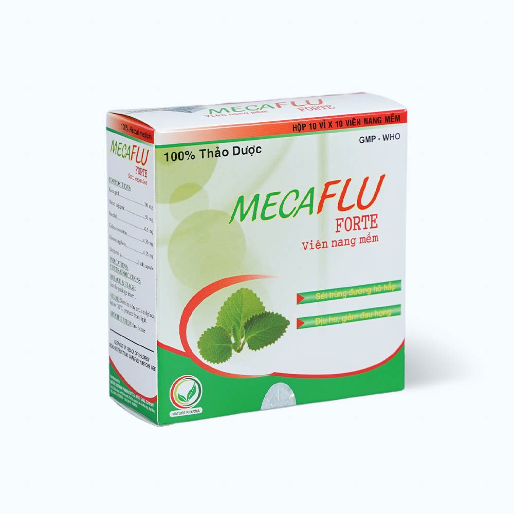 Viên nang Mecaflu có tác dụng điều trị các chứng ho, đau họng, cảm cúm. Ngoài ra, Mecaflu còn giúp sát trùng đường hô hấp và làm loãng niêm dịch, dịu ho.
