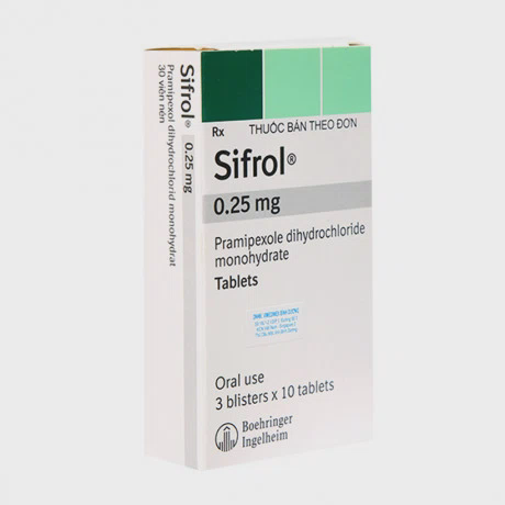 Sifrol 0,25mg là một loại thuốc chứa hoạt chất Pramipexole, được chỉ định điều trị các dấu hiệu và triệu chứng của bệnh Parkinson vô căn