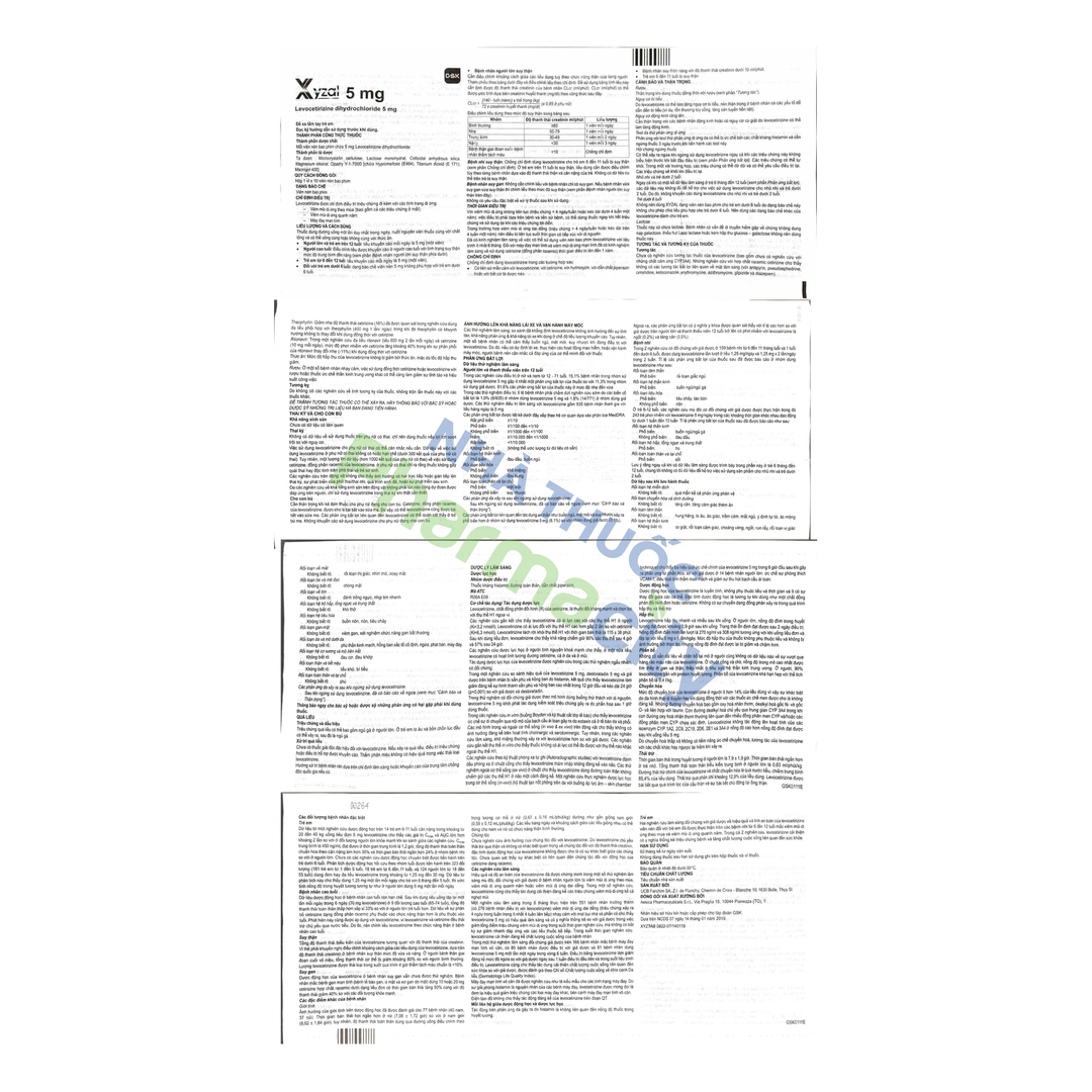 Mỗi viên nén bao phim chứa 5mg Levocetirizin dihydroclorid.