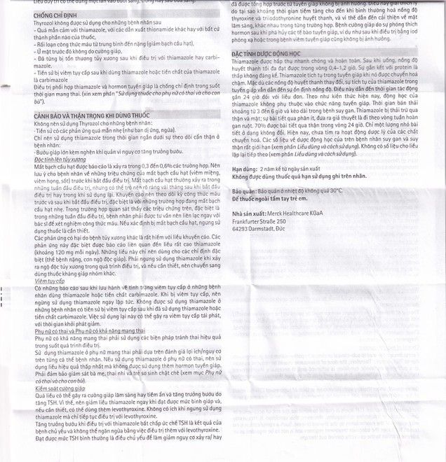 Nhóm điều trị: Chế phẩm kháng giáp, dẫn xuất imidazole chứa Lưu huỳnh.