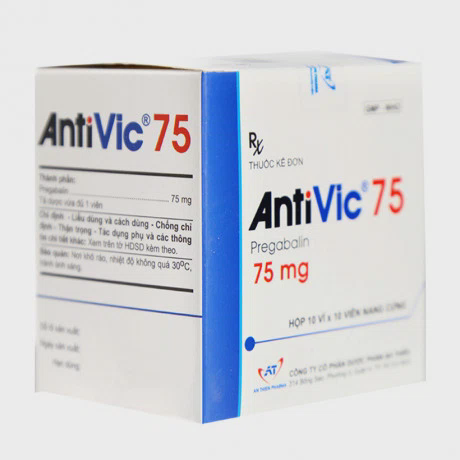 Antivic 75 mg của Công ty cổ phần dược phẩm An Thiên, chứa hoạt chất là pregabalin thuộc một nhóm thuốc được sử dụng để điều trị chứng động kinh, đau thần kinh và rối loạn lo âu lan tỏa (GAD) ở người trưởng thành.