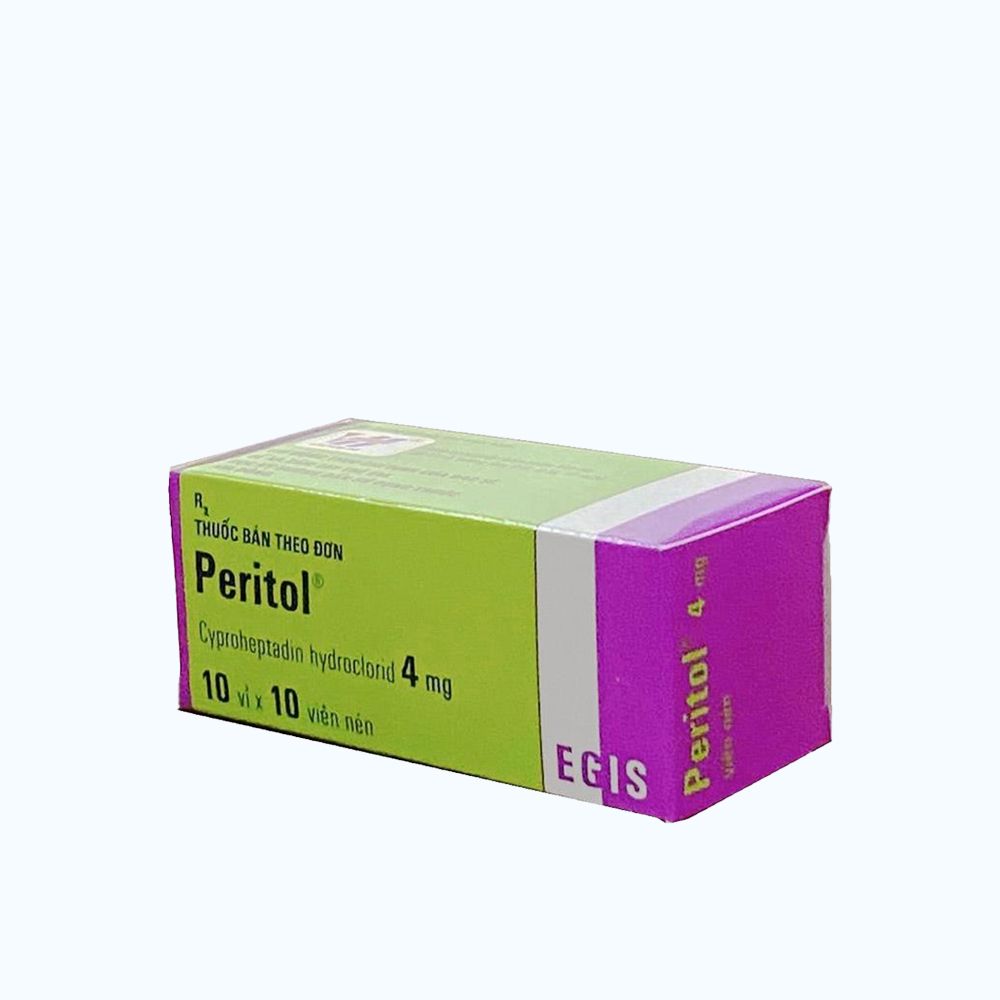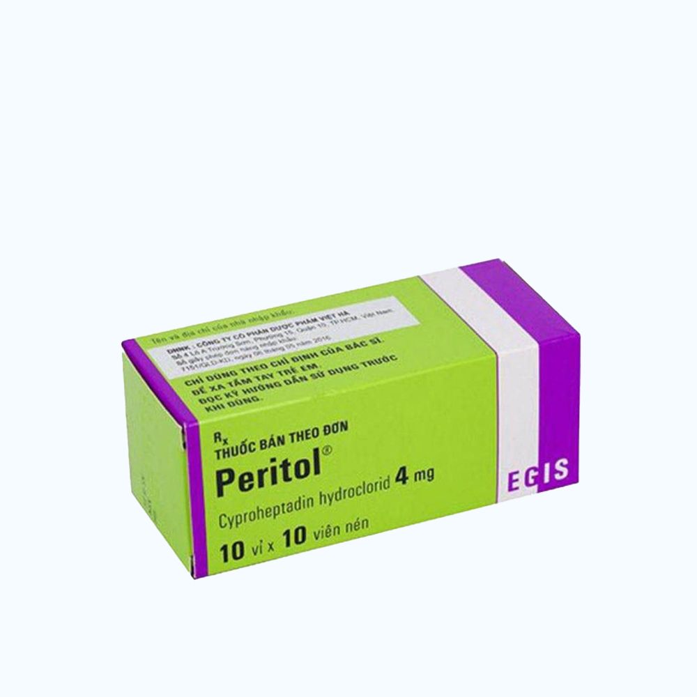 Hoạt chất: Trong mỗi viên nén Peritol có 4mg cyproheptadin hydroclorid (tương đương với 4,3mg cyproheptadin hydroclorid sesquihydrat).