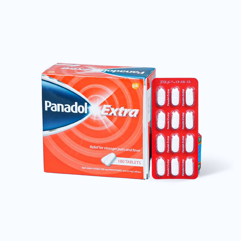 Panadol Extra được sản xuất bởi GlaxoSmithKline (GSK) chứa paracetamol là một chất hạ sốt, giảm đau và caffeine là một chất tăng cường tác dụng giảm đau của paracetamol. Thuốc được khuyến cáo để điều trị hầu hết các triệu chứng đau từ nhẹ đến vừa và hạ sốt, ví dụ như đau đầu, kể cả đau nửa đầu, đau lưng, đau răng, đau khớp và đau bụng kinh, giảm các triệu chứng cảm lạnh, cảm cúm và đau họng.