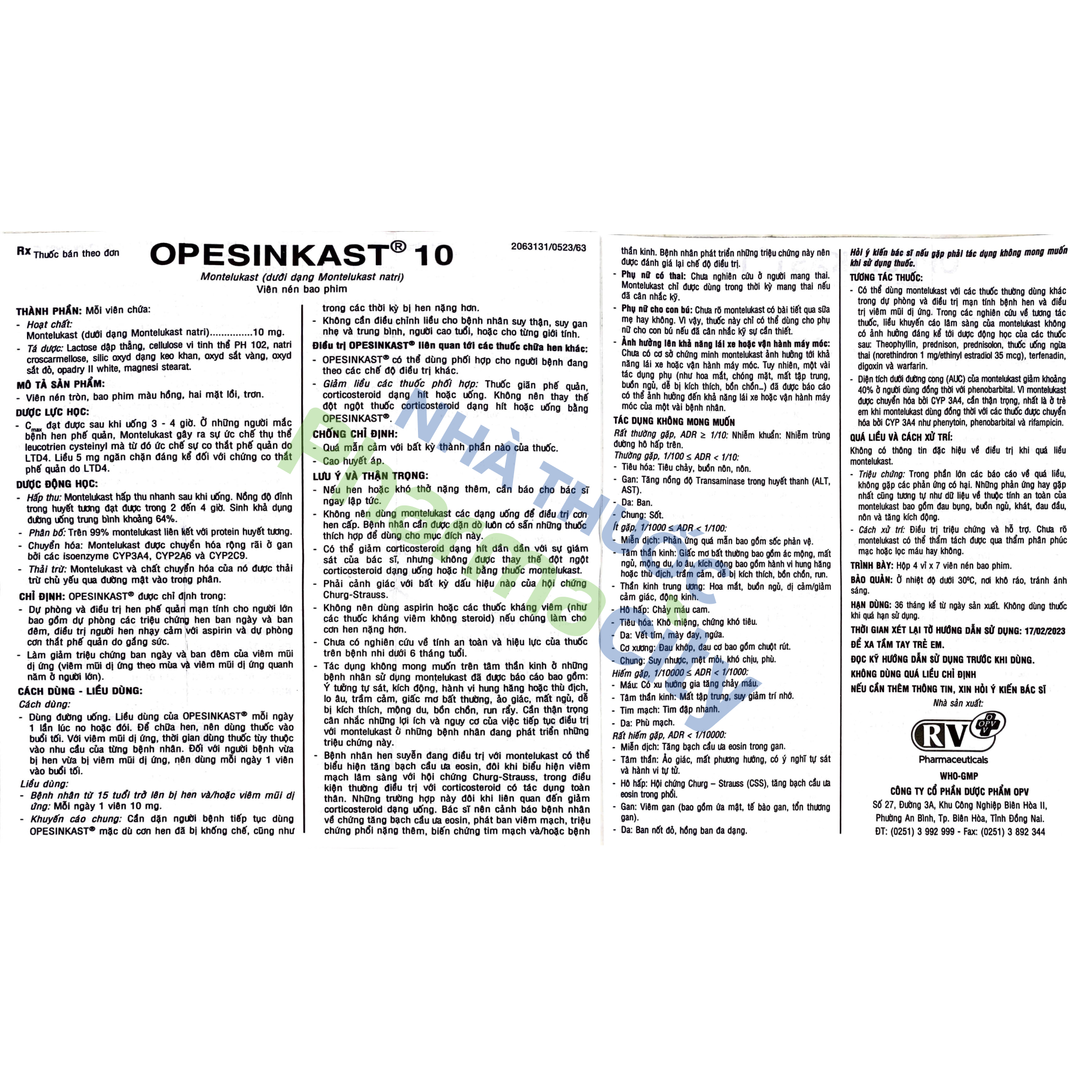 Opesinkast 10 là một thuốc kê đơn, thuộc nhóm thuốc tác dụng trên đường hô hấp. Thuốc Opesinkast 10 có thành phần hoạt chất chính là montelukast.