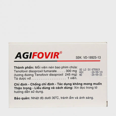 Agifovir của Công ty Cổ phần Dược phẩm Agimexpharm, thành phần chính là Tenofovir disoproxil fumarat, là thuốc kháng retrovirus dùng để điều trị HIV type 1 và viêm gan B mạn tính.