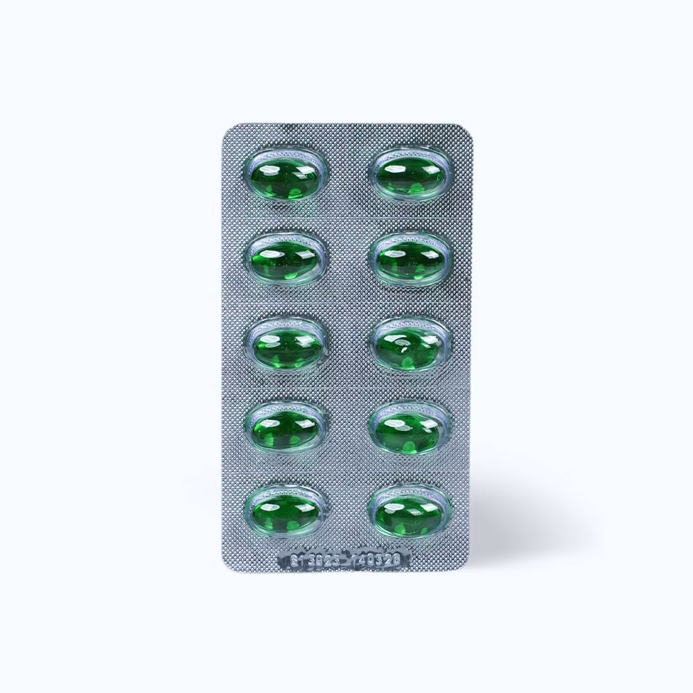 Tá dược: Gelatin, dầu đậu nành, xanh green S, glycerin, vanillin, methyl paraben, propyl paraben vừa đủ 1 viên.