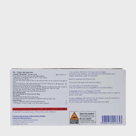 - Bút tiêm Lantus Solostar là một sản phẩm củaCông ty Sanofi. Thuốc dùng để điều trị bệnh đái tháo đường ở người lớn, thiếu niên và trẻ em từ 6 tuổi trở lên.