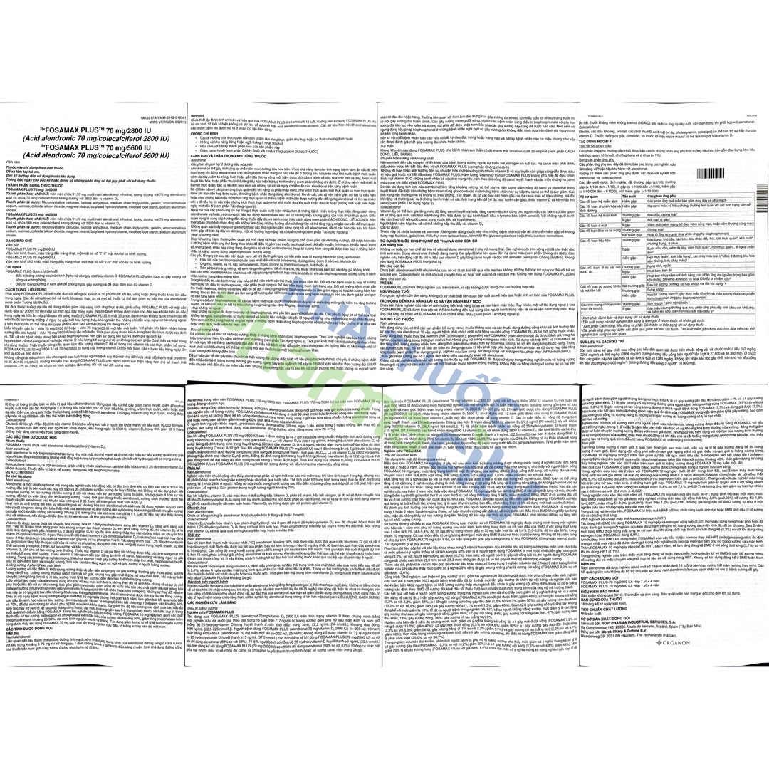 Fosamax Plus 70mg/5600IUlà một loại thuốc kết hợp được sử dụng để điều trị và ngăn ngừa loãng xương ở phụ nữ sau mãn kinh. Thuốc này chứa hai hoạt chất chính:alendronate sodium(70mg) vàcholecalciferol(vitamin D3) (5600IU). Alendronate là một bisphosphonate giúp ngăn ngừa mất xương, trong khi vitamin D3 giúp cơ thể hấp thụ canxi hiệu quả hơn.