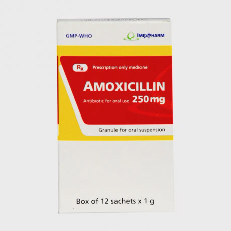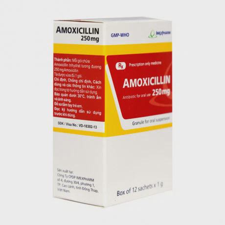 Thuốc cốm pha hỗn dịch uống Amoxicillin 250mg Imexpharm là một loại thuốc kháng sinh thuộc nhóm penicillin. Thuốc hoạt động bằng cách tiêu diệt vi khuẩn gây bệnh, giúp cơ thể chống lại nhiễm trùng. Thuốc thường được dùng để điều trị các bệnh nhiễm khuẩn do vi khuẩn nhạy cảm với amoxicillin gây ra.