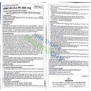 - Mỗi gói chứa: Amoxicillin 250mg
