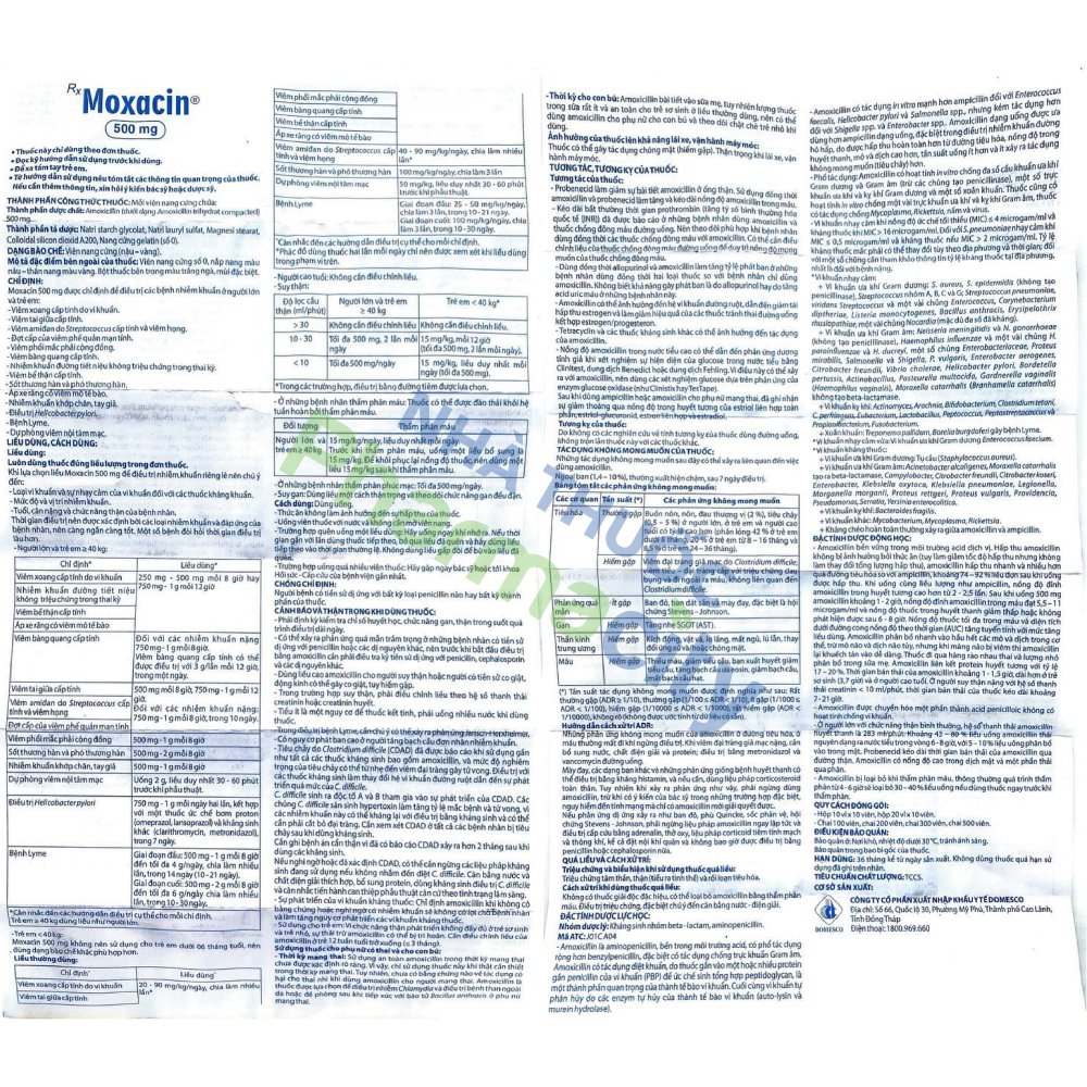 Moxacin 500mglà một loại thuốc kháng sinh thuộc nhóm quinolone, được sử dụng để điều trị các nhiễm khuẩn do vi khuẩn nhạy cảm
