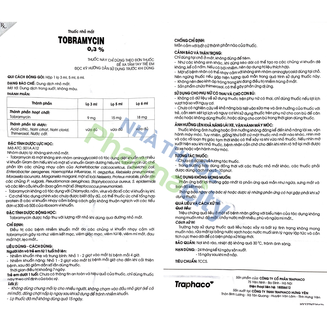 Hoạt chất:Tobramycin 18mg(hàm lượng 0.3%)