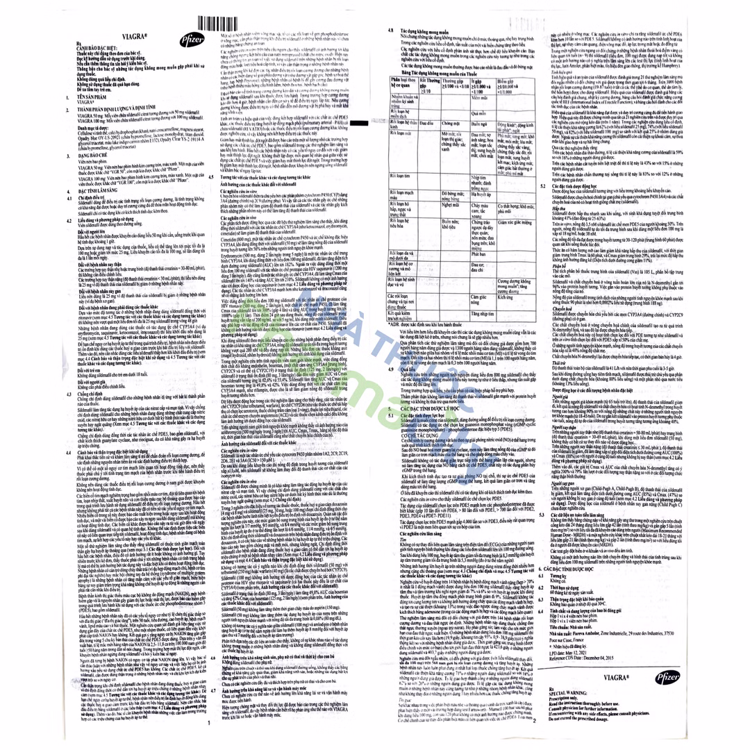 - Viagra 50mg của công ty Pfizer Australia, thành phần chính là sildenafil citrate, là thuốc dùng để điều trị các rối loạn cương dương cho nam giới trưởng thành. Thuốc được bào chế dưới dạng viên nén bao phim hình kim cương tròn, màu xanh, thuốc thường được uống trước khi quan hệ tình dục 1 giờ.
