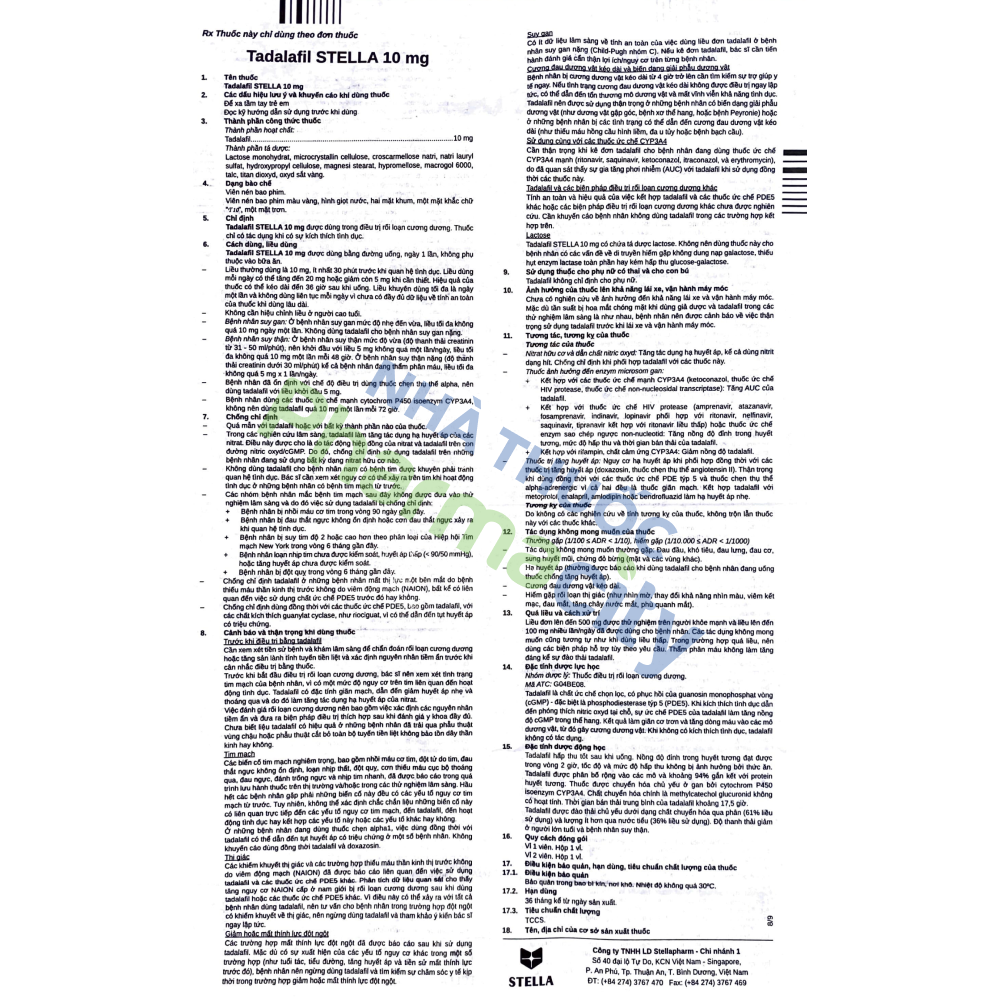 Tadalafil Stella 10mg (1 vỉ x 2 viên) là gì
