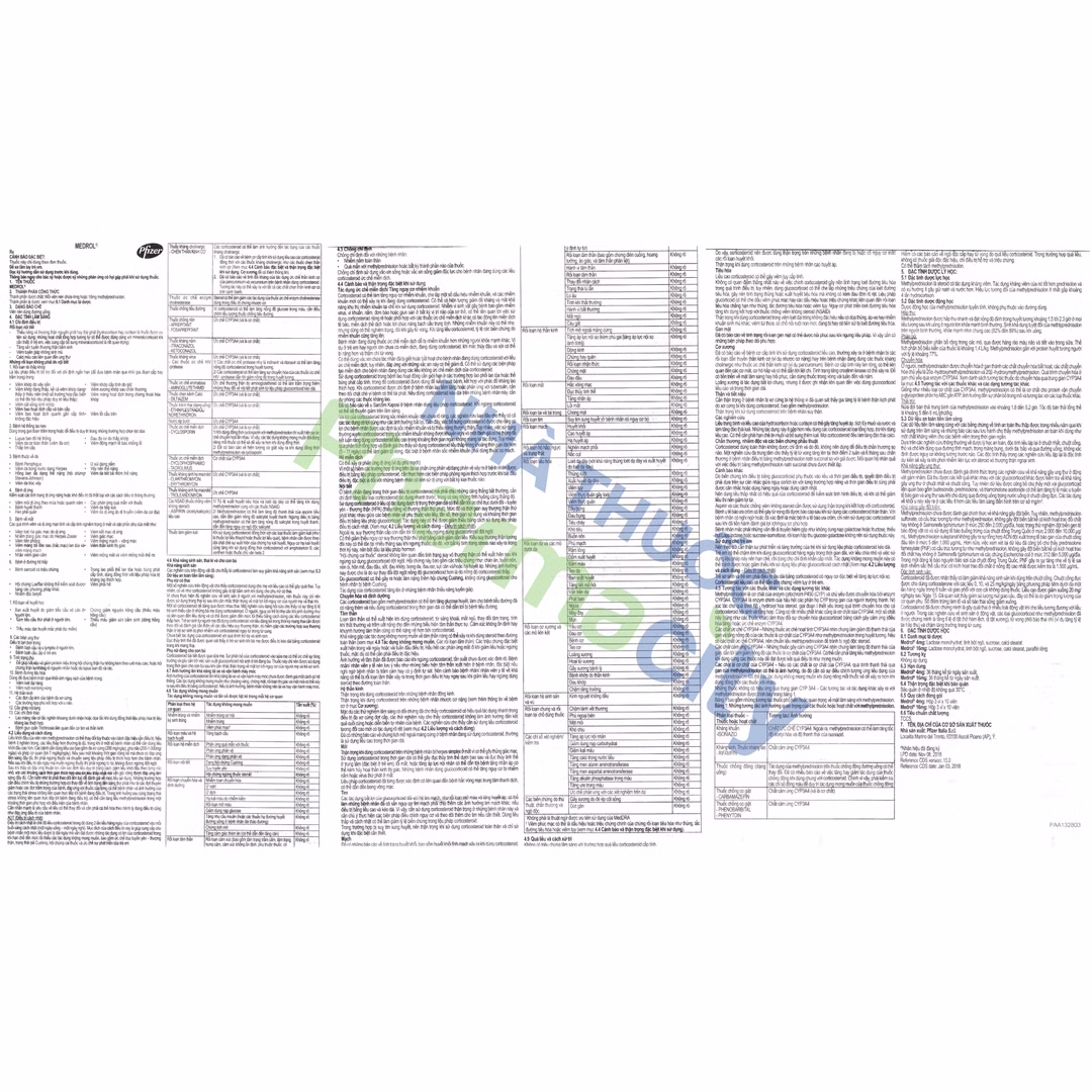 - Những thuốc không có hiệu ứng qua trung gian CYP 3A4:Các tương tác và ảnh hưởng khác xảy ra với methylprednisolon được trình bày trong bảng 1 trong tờ HDSD