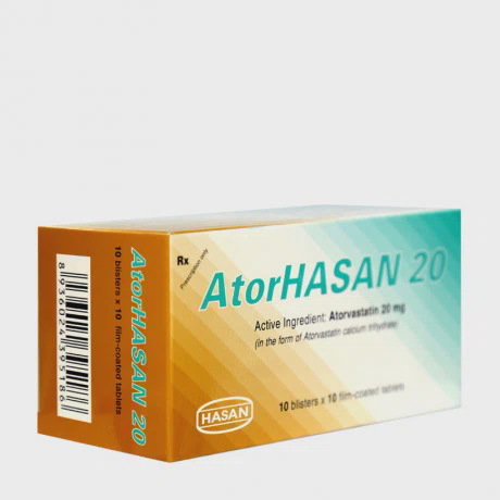Viên nénAtorhasan 20mgđiều trị tăng cholesterol máu, giảm mỡ máu (10 vỉ x 10 viên) Atorvastatin calci trihydrat 21,8mg. Điều trị rối loạn lipid huyết, dự phòng biến cố tim mạch …