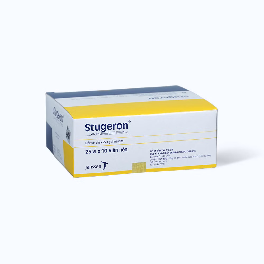 - Stugeron 25 mg có thể gây buồn ngủ, đặc biệt là lúc bắt đầu điều trị. Vì thế nên thận trọng khi dùng chung với rượu, thuốc ức chế hệ thần kinh trung ương hoặc thuốc chống trầm cảm ba vòng.