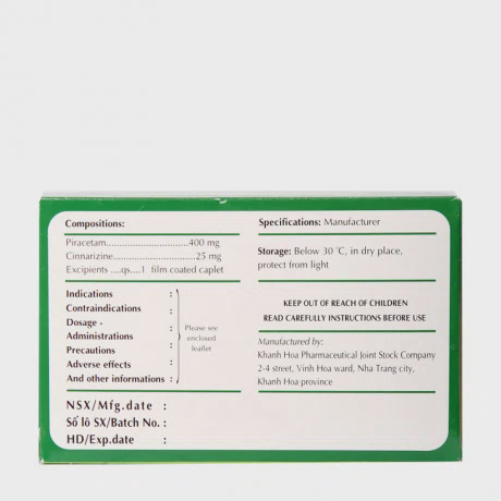 Viên nén Kacetam Plus 400mg/25mg là một loại thuốc kết hợp chứa hai thành phần chính: piracetam 400mg và cinnarizine 25mg. Thuốc thường được dùng để điều trị các vấn đề liên quan đến suy giảm trí nhớ và chức năng nhận thức.
