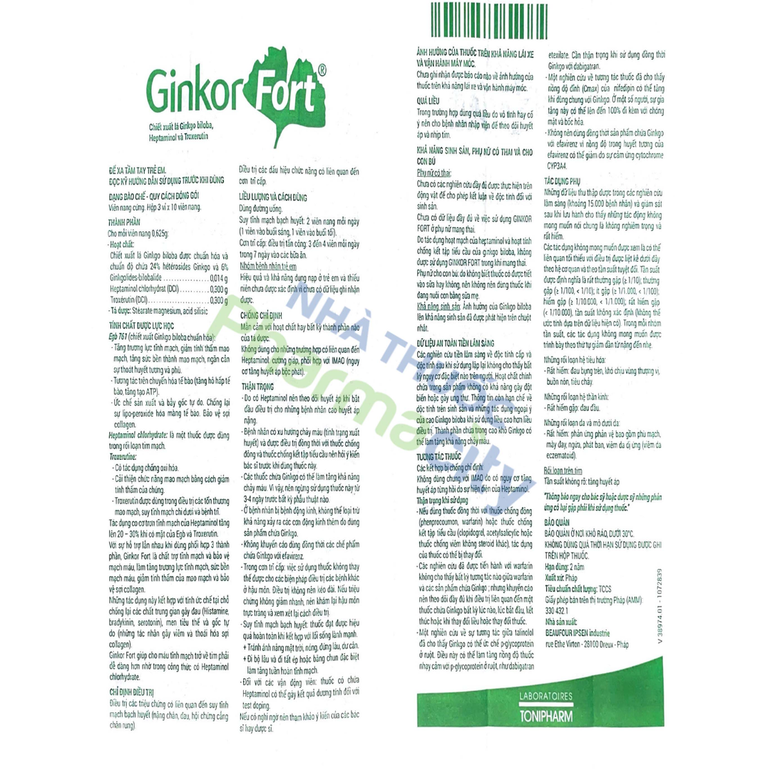 Ginkor Fort của Công ty LABORATOIRES TONIPHARM, thành phần chính là Cao ginkgo biloba chuẩn hóa, heptaminol chlorhydrat, troxerutine, dùng để điều trị điều trị các triệu chứng liên quan đến suy tĩnh mạch bạch huyết (nặng chân, đau chân và hội chứng cẳng chân rung), điều trị các dấu hiệu chức năng liên quan đến cơn trĩ cấp tính.
