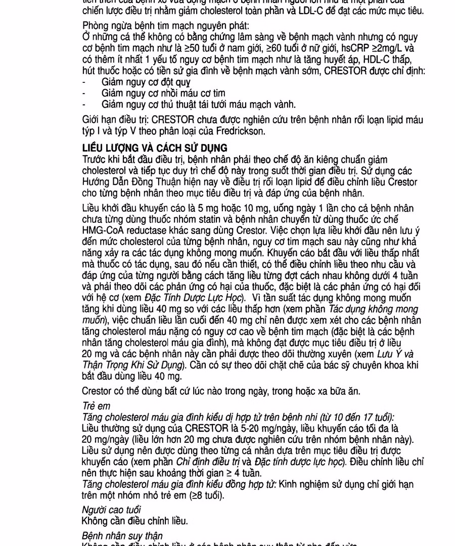- Ở những bệnh nhân tăng cholesterol thứ phát do thiểu năng tuyến giáp hoặc hội chứng thận hư, thì những bệnh này phải được điều trị trước khi bắt đầu dùng Crestor.