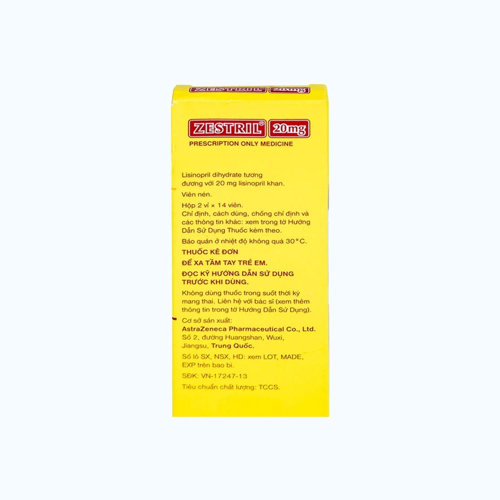 - Nên uống Zestril một lần duy nhất mỗi ngày và ở cùng thời điểm trong ngày. Thức ăn không ảnh hưởng đến sự hấp thu của viên nén Zestril.