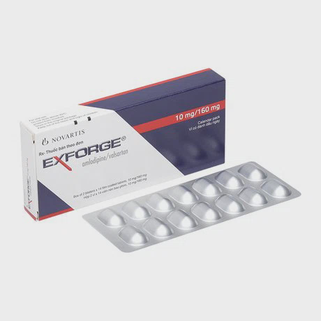 Thuốc Exforge 10/160 do NOVARTIS FARMACEUTICA S.A sản xuất dạng viên uống phối hợp có thành phần là Amlodipin besylate, Valsartan có tác dụng điều trị tăng huyết áp vô căn.