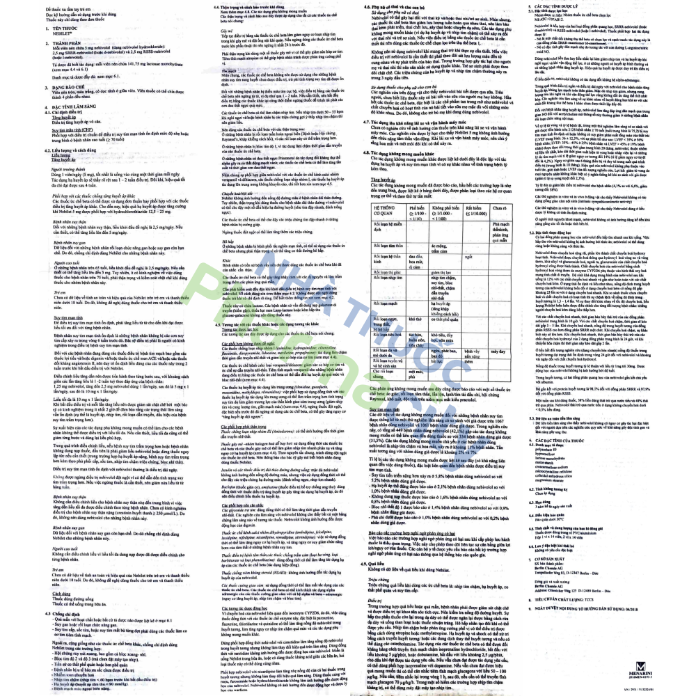 Nebilet của Berlin Chemie AG chứa hoạt chất chính là nebivolol. Thuốc được dùng để điều trị tăng huyết áp và suy tim mạn tính.