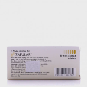 Đóng gói: Hộp chứa 5 vỉ (Alu/PVC) x 10 viên nén bao phim.