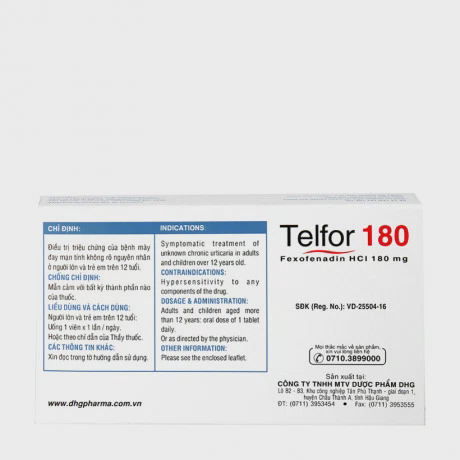 Telfor 180 là thuốc kháng histamine, được sử dụng để điều trị các triệu chứng dị ứng như hắt hơi, ngứa, chảy nước mũi, và ngứa mắt.