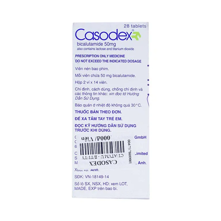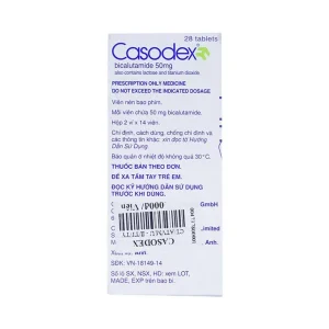 Casodex 50mg dùng trong điều trị ung thư tiền liệt tuyến tiến triển phối hợp với các chất có cấu trúc tương tự LHRH hoặc phẫu thuật cắt bỏ tinh hoàn.
