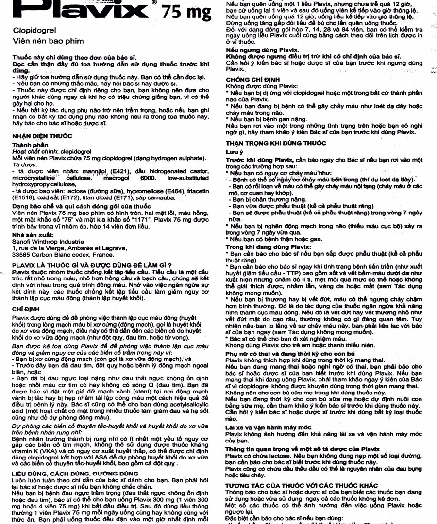 - Cần hỏi ý kiến bác sĩ hoặc dược sĩ của bạn trước khi ngừng dùng Plavix.