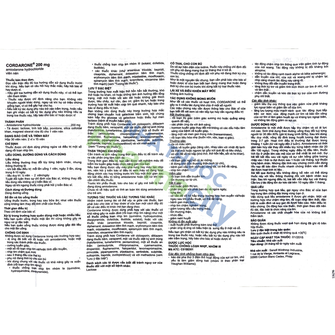Thành phần Cordarone 200mg