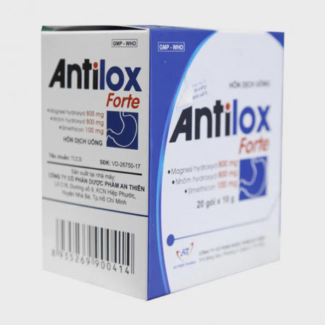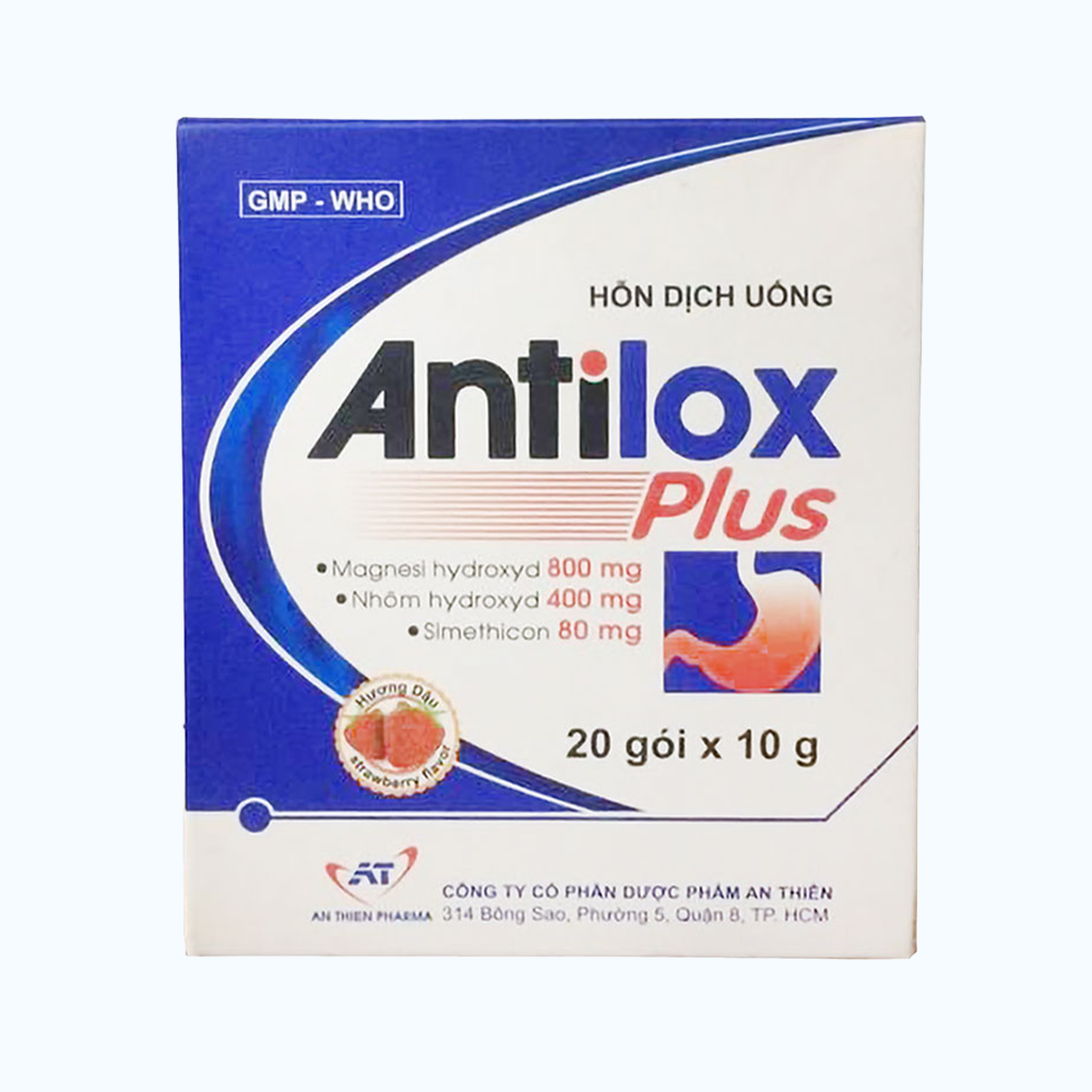 - Hỗn dịch uống Antilox Plus dùng điều trị viêm dạ dày cấp tính, viêm loét tá tràng, sản phẩm sử dụng cho người bị đầy hơi, chướng bụng, đau bụng, khó tiêu trong quá trình thực hiện thủ thuật chụp X quang.