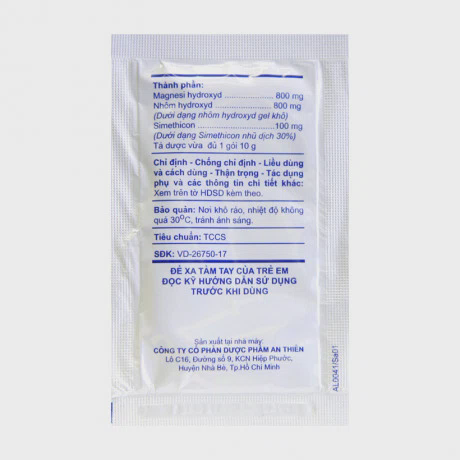 Magnesi hydroxyd 800mg; Nhôm hydroxyd (dưới dạng Nhôm hydroxyd gel khô) 400mg; Simethicon (dưới dạng Simethicon nhũ dịch 30%) 80mg