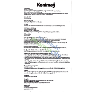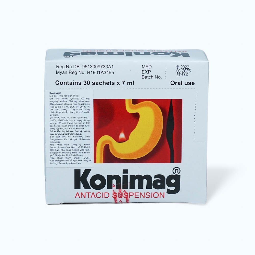 Konimag của Công ty PT. Konimex – Indonesia, thành phần chính là nhôm hydroxyd, magnesi trisilicat, simethicon, thuốc dùng trung hòa acid, làm giảm các triệu chứng khó chịu ở dạ dày. Hỗn dịch màu trắng mùi bạc hà.