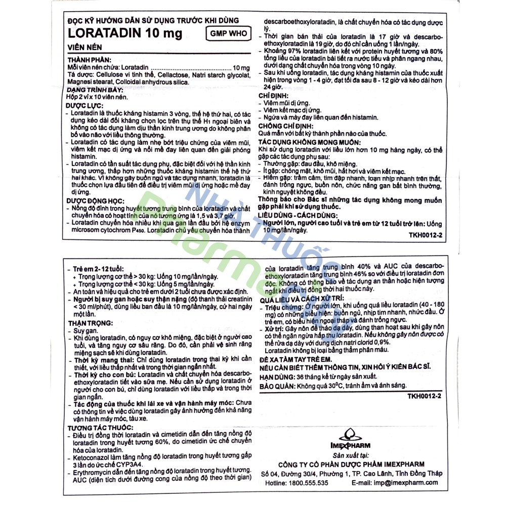 Loratadin 10mg Traphaco là thuốc kháng histamin không gây buồn ngủ, được sử dụng để điều trị các triệu chứng dị ứng.