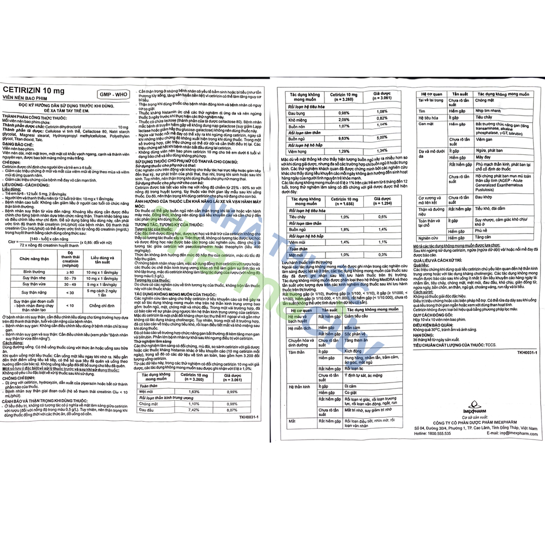 Khi sử dụng thuốc “Cetirizin IMP® 10”, bạn có thể gặp các tác dụng không mong muốn (ADR).