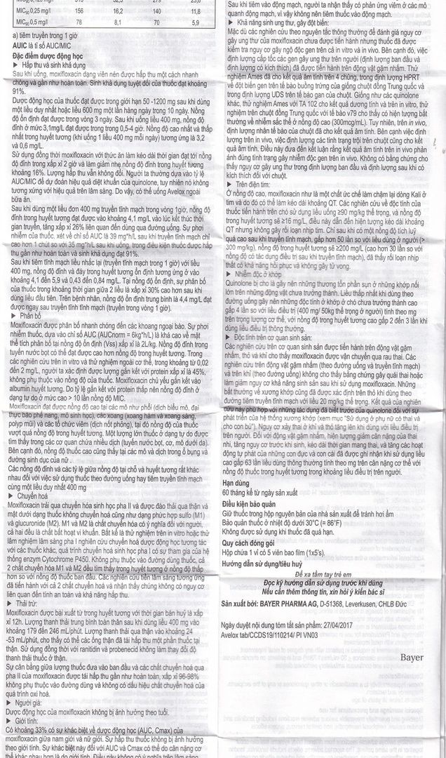 Viên Avelox 400mg đã được nghiên cứu trong những thử nghiệm lâm sàng kéo dài đến 21 ngày điều trị (trong điều trị nhiễm trùng da và tổ chức dưới da có biến chứng).