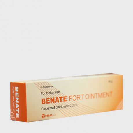 Benate Fort Ointment là công thức chứa corticosteroid được chỉ định làm giảm viêm và ngứa của các bệnh về da đáp ứng với corticosteroid: Bệnh da dai dẳng, vảy nến, chàm lâu ngày khó trị, lichen phẳng, lupus hồng ban dạng đĩa, và các tình trạng khác không đáp ứng với các loại steroid yếu hơn.