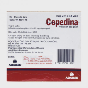 Chưa có đủ kinh nghiệm điều trị cho bệnh nhân mắc bệnh gan mức độ trung bình bị xuất huyết nội tạng. Do đó, cần thận trọng khi sử dụng clopidogrel cho những bệnh nhân này. Copedina có chứa lactose. Bệnh nhân mắc các bệnh di truyền hiếm gặp không dung nạp galactose, thiếu enzyme Lapp lactase hoặc kém hấp thu glucose-galactose không nên sử dụng thuốc này.