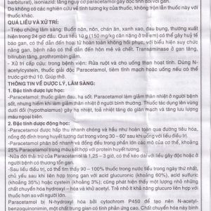 Nửa đời thải trừ của paracetamol là 1,25 -3 giờ, có thể kéo dài với liều gây độc hoặc ở người bệnh có thương tổn gan.