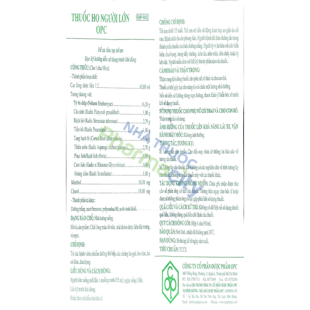 - Chưa có báo cáo về tác dụng phụ (ADR) khi sử dụng THUỐC HO NGƯỜI LỚN OPC.
