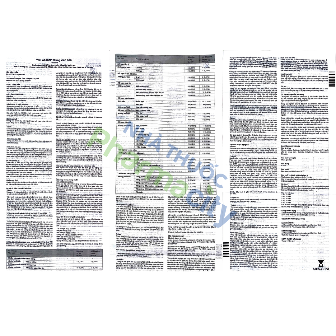 - Trong các thử nghiệm lâm sàng, số lượng tác dụng không mong muốn gặp phải ở bệnh nhân viêm mũi dị ứng hoặc mày đay nguyên phát mãn tính được điều trị bằng Bilastine 20 mg tương tự với số lượng ghi nhận trên bệnh nhân sử dụng giả dược (12,7% so với 12,8%).