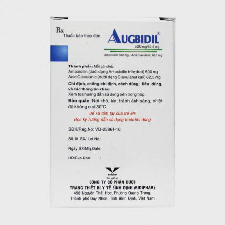 – Hoạt chất: Acid clavulanic (dưới dạng Clavulanat kali) 62,5mg, Amoxicillin (dưới dạng Amoxicillin trihydrat) 500mg