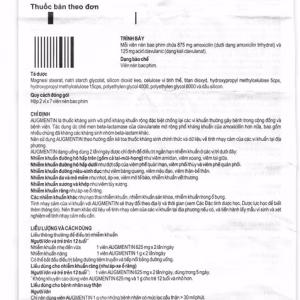 Viên nén Augmentin BD 1g là một loại thuốc kháng sinh phối hợp, được sử dụng để điều trị các bệnh nhiễm khuẩn do vi khuẩn nhạy cảm. Thuốc kết hợp hai thành phần chính là amoxicillin và acid clavulanic.