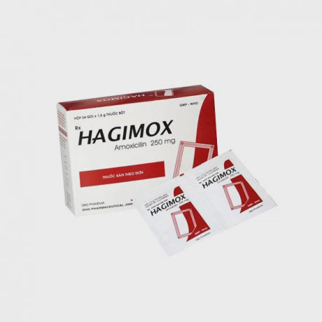 Bột Hagimox là thuốc kháng sinh điều trị nhiễm khuẩn của Công ty cổ phần Dược Hậu Giang DHG, có thành phần chính là Amoxicillin. Hagimox được sử dụng để điều trị các nhiễm khuẩn như nhiễm khuẩn hô hấp trên, nhiễm khuẩn hô hấp dưới, và nhiễm khuẩn tiết niệu. Thuốc được bào chế dưới dạng viên nang cứng màu xám – vàng ngà, đóng gói hộp 10 vỉ x 10 viên.