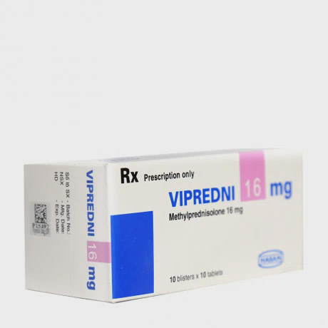 Vipredni 16mglà một loại thuốc kháng viêm thuộc nhóm glucocorticoid, được sử dụng để điều trị các tình trạng viêm và dị ứng. Hoạt chất chính của thuốc là Methylprednisolon, một loại corticosteroid giúp giảm viêm và ức chế hệ miễn dịch. Vipredni thường được chỉ định trong các trường hợp viêm thấp khớp, bệnh ngoài da, cũng như trong điều trị một số bệnh lý liên quan đến miễn dịch và ung thư. Sản phẩm có dạng viên nén và được sản xuất bởi hãng Hasan-Demarpharm tại Việt Nam.