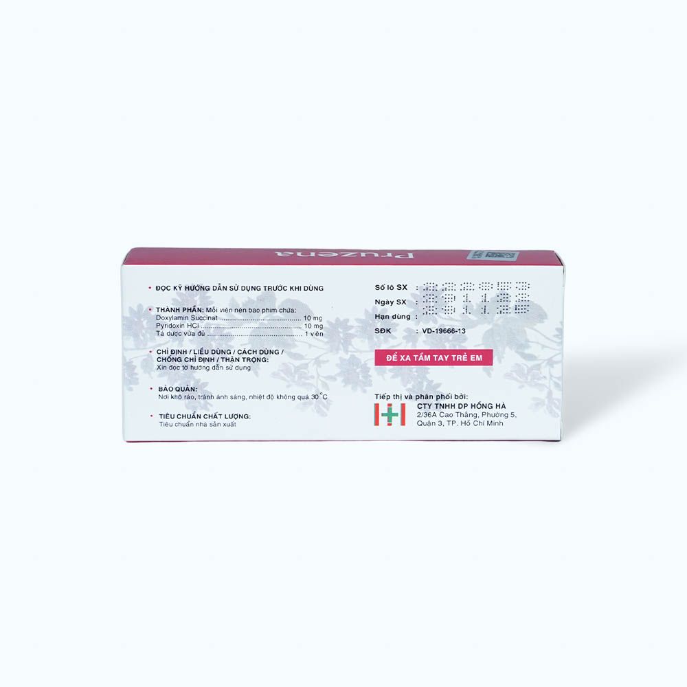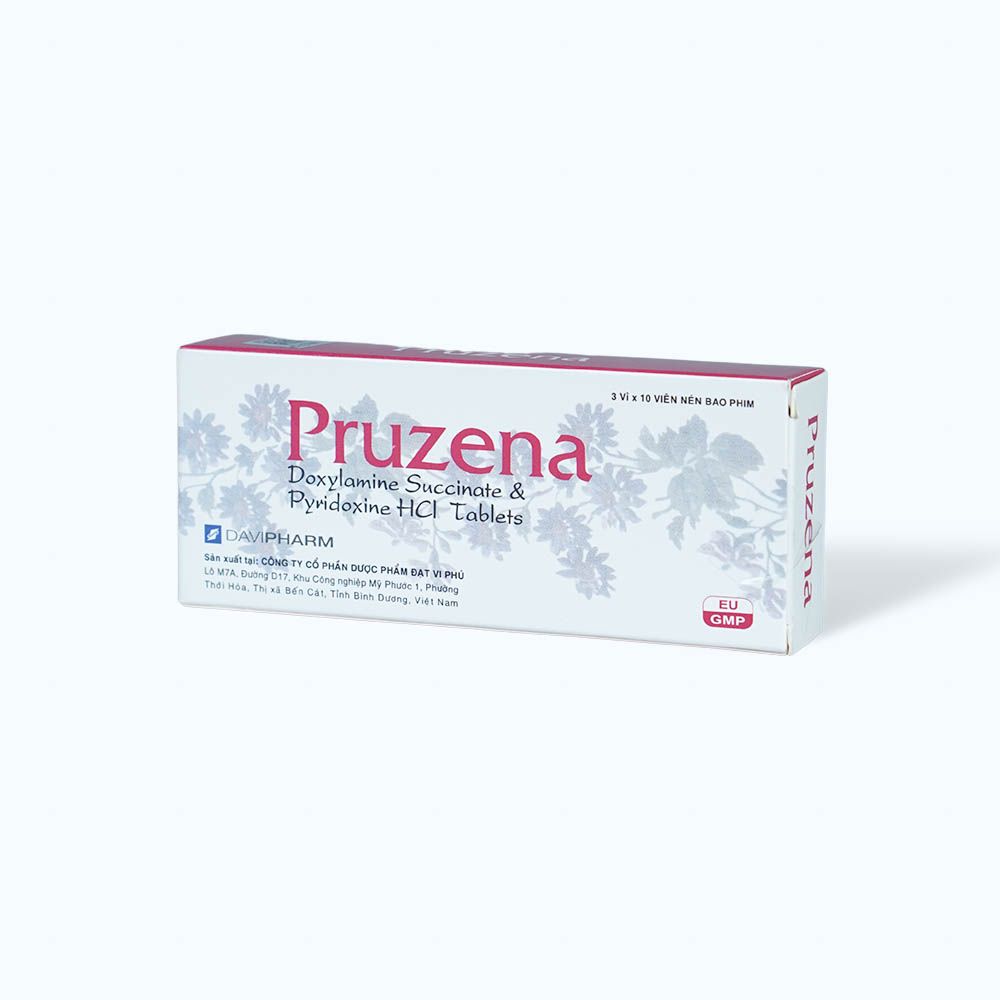 Thuốc Pruzena 10 mg của Công ty Cổ phần Dược phẩm Đạt Vi Phú (Davipharm) có thành phần chính Doxylamin và Pyridoxin. Điều trị buồn nôn và nôn mửa trong thai kỳ, chứng nôn nghén và dùng tạm thời để làm giảm tình trạng mất ngủ.