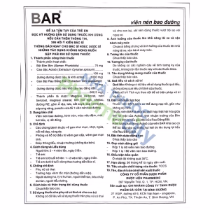 Viên nén bao đường BAR 180 viên được chỉ định dùng trong các trường hợp sau: